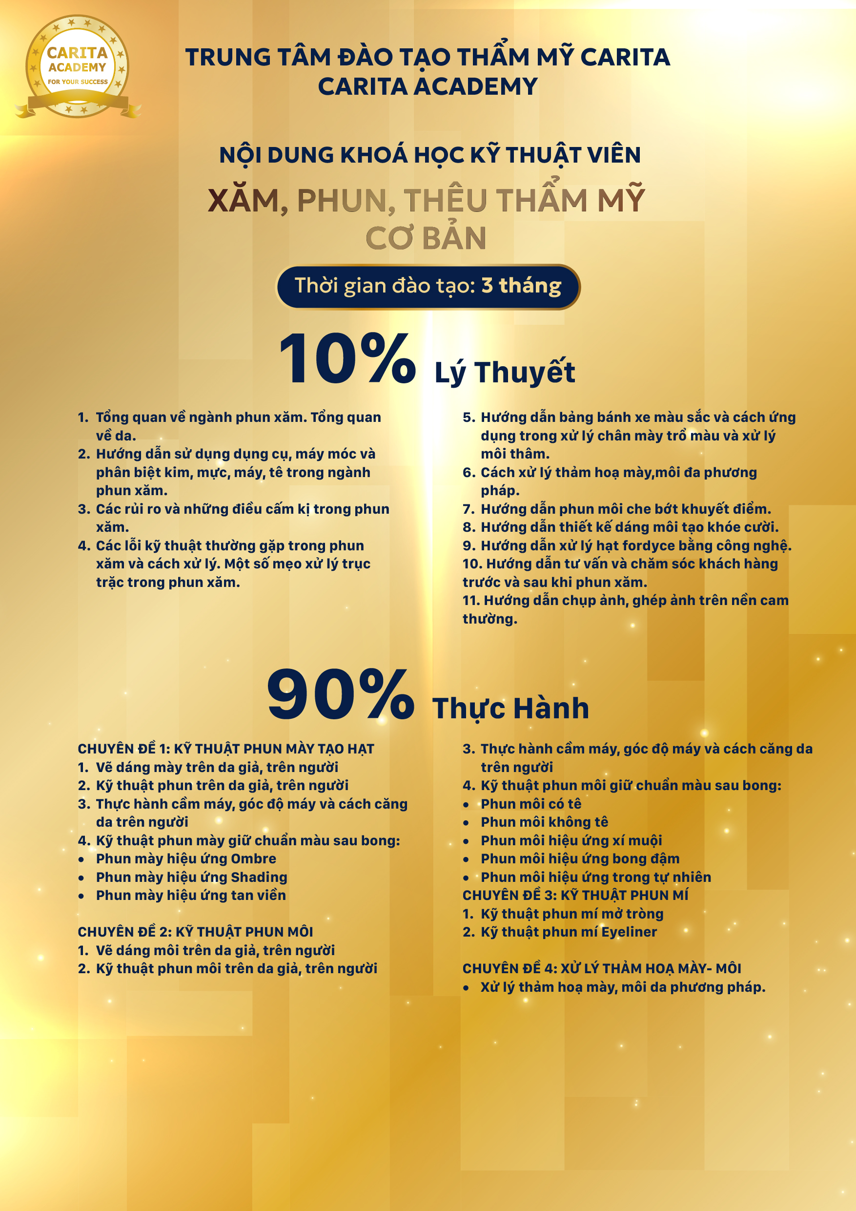 Khóa học Kỹ thuật viên phun xăm thẩm mỹCHƯƠNG TRÌNH ĐÀO TẠO NGÀNH PHUN XĂM THẨM MỸ